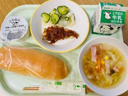 今日は地場産の食材をふんだんに使った、学校給食【とやまの日】献立です。