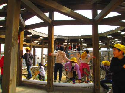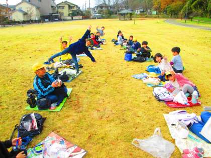 次に、呉羽丘陵多目的広場に行きました。心配していた天候も、子供たちのパワーが届いたのか日差しが垣間見えた時間もあり、伸び伸びと過ごすことが出来ました。