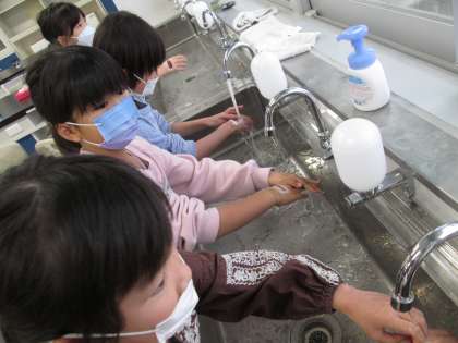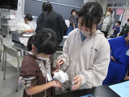 傷口に付いた砂や泥をきれいに落とす体験をしました。