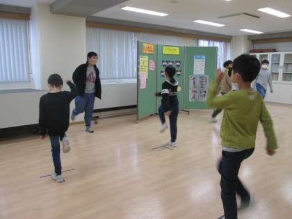 「背骨チェックコーナー」では、目を閉じて足踏みをすることで、背中がどう曲がっているかわかりました。