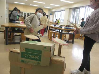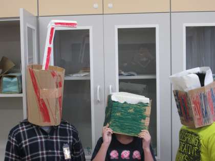 自分たちで話し合い、よく考え、作品完成に向けて活動しています。CMの構想を練ったり、小道具を作ったり、演技練習をしたり・・・。大人とは何か、子供とは何か考えながら、のびのびと活動しています。