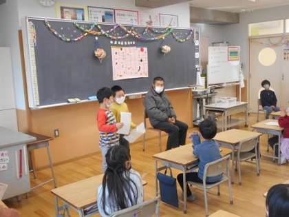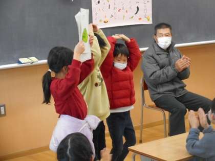 2年生は春から生活科の学習でお世話になった地域の野菜作りの先生をお招きして、ありがとうの会を行いました。会ではクイズやダンス、プレゼント渡しで感謝の気持ちを表しました。また、給食の時間に、5年生が育てた餅米で作ったおはぎを一緒にいただきました。