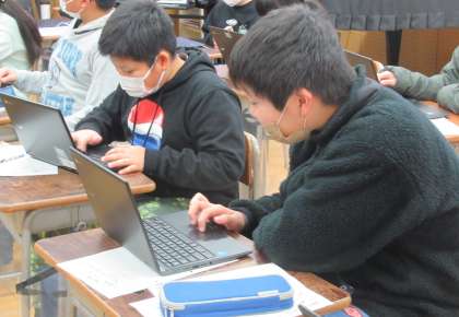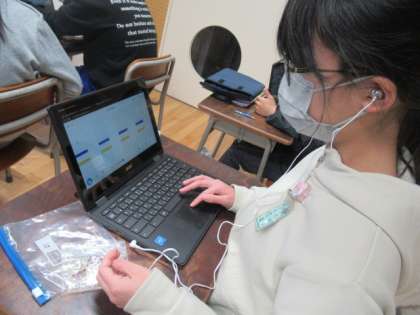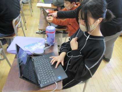 12月14日(水)、音楽科では、日本の音階の特長をみつけようということで、クロームブックを使って「ド・ミ・ファ・ラ・シ」の5音の音階で旋律をつくりました。子供たちは、ソングメーカーで自分でオリジナルの旋律を作りました。その様子は、作曲家のようでした。最後にみんなで友達の作品を聴き合いましたが、どの作品も外国の音階とは違う日本の音階らしさが出るものになりました。