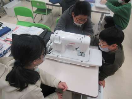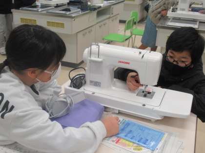 1月16日(月)、家庭科ではミシンの使い方を学習したり、空縫いをしたりしました。ほとんどの子供たちが、ミシンを使うのが初めてでしたが、手縫いの体験とは違った経験が、ミシンでは期待できそうです。これから家庭科では、布でミシンの練習をして、最後には自分のエプロンを作ります。