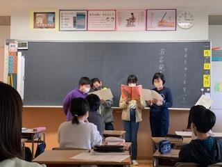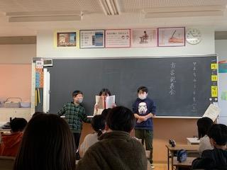 1月17日(火)、国語科では「方言と共通語」の学習をしました。富山県の方言クイズをいくつかしましたが、子供たちはあまり知らない様子でした。初めて聞く富山の方言の意味を聞いて驚く子供や、おじいちゃんおばあちゃんがよく使っていると思い出す子供もいました。クイズや調べ学習を通して、方言のよさに気付いたり、共通語の必要性を感じたりする子供たちでした。今日は、富山の方言を使ったオリジナル物語や会話の発表会をしました。意味が通じないこともありましたが、ユーモア溢れる作品ばかりでした。