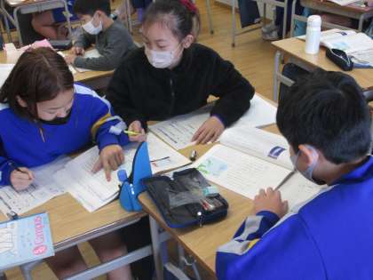 4年生国語科の学習で「うなぎのなぞを追って」を学習しています。 今日は、ペアで各段落の要約をしました。