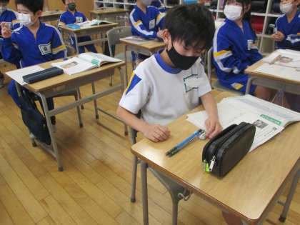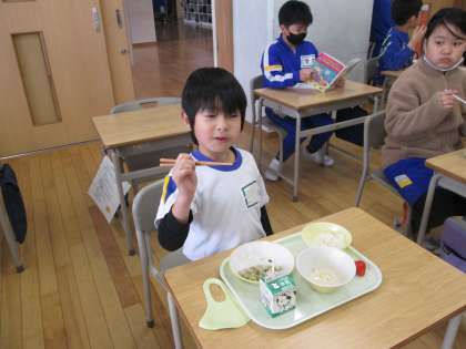 1月27日(金)、道徳の時間は「生きたれいぎ」の学習をしました。学習の最後に、給食週間にちなんで箸の持ち方やしてはいけないことなど、箸の作法を学び、給食時間に実践しました。