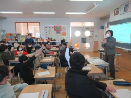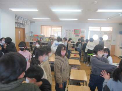 1月31日(火)、今日はスクールカウンセラーの先生と一緒にショートエクササイズをしました。まずウォーミングアップとして、後出しじゃんけんをしたり、一言も話さずにジェスチャー等で誕生日順に並んだりするゲームをしました。そのあと、ペアで「どちらが好きかな?」というインタビューゲームをしました。犬と猫はどちらが好き?子供と大人はどちらが好き?など訪ね合い、盛り上がりました。また、友達のまだまだ知らないところに気づけた様子でした。SCの先生は、以前JICAの活動として、エチオピアに行かれたことがるということで、そのときの話もたくさん聞くことができました。
