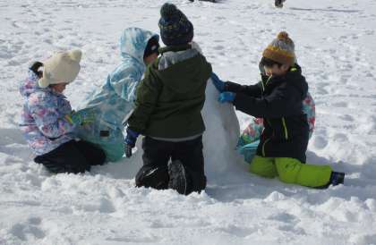 1月31日(火)、久しぶりにいい天気に恵まれ、グラウンドで雪遊びをしました。