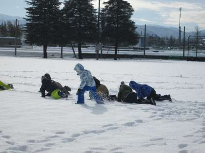 かまくらをつくったり、雪の上に寝転んだりするなど、思い思いに楽しみました。
