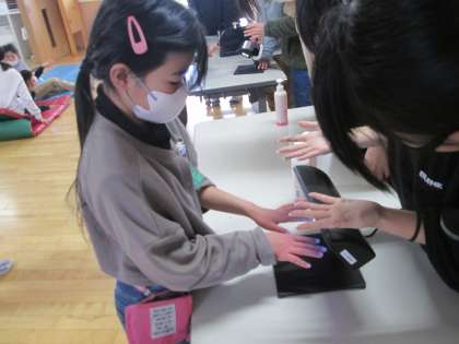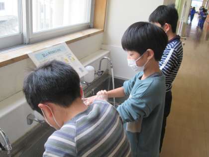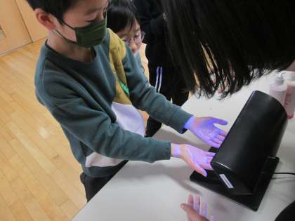 2月8日(水)、みどりのタイムに、保健委員会に手洗いチェックをしてもらいました。手首や爪周りの洗い残しが多かったようです。意識して洗うようにしましょう。