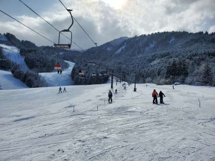 4〜6年生は、今日はスキー学習です。 あわすのスキー場はよい天気です。
