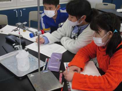 今日は、「水が冷えて氷になるとき、水の温度や様子はどのように変わるのか」を実験で確かめました。なかなか結果のでにくい実験ではありますが、子供たちの想いが届いたのか、きれいな実験結果がでました。
