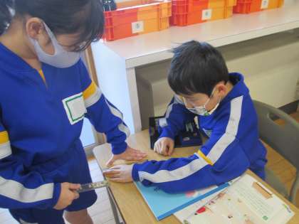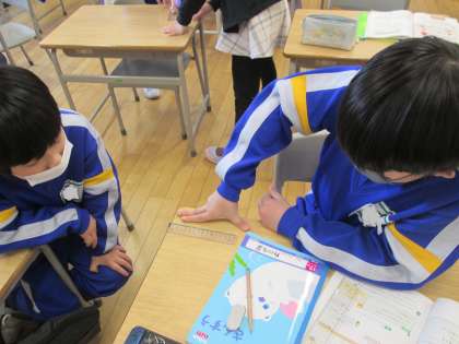 自分の「あた」と「つか」を使って、教室の様々な物の長さを測ってみました。昔の人の知恵に感心しつつ、日々の生活でも役立ちそうだという声もありました。ぜひ、使ってみましょう。
