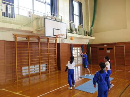 2月16日(木)、リーグ戦に向けてチーム練習を頑張っています。特別ルールとしてディフェンスが入らないセーフティーゾーンを作りました。チームの仲間と相談しながらゾーンの場所や形を模索していました。