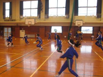 タグラグビー 第2節始動 4年生 公開日 2023/03/02 更新日 2023/03/02 4年生 4年生体育科、最後の学習は4年1組が最も熱くなる「タグラグビー」です。1学期経験しているということもあり、各チームサインプレーで得点をとっていました。今日もドラマがうまれました。