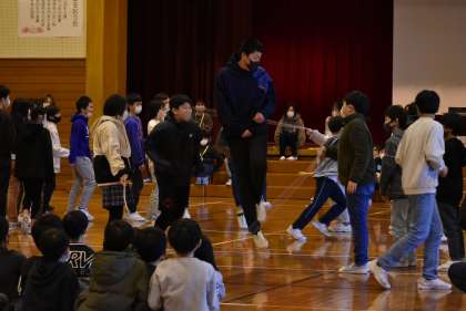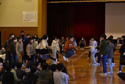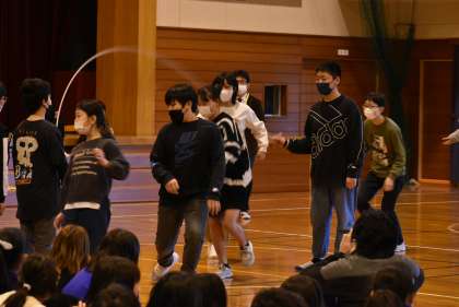 5年生は6年生さんと一緒に「色団対抗8の字対決」をしました。どの団もさすが高学年といったジャンプでした。下学年からは「すごい!」という声も聞こえてきました。卒業前に一緒に活動ができてよかったです。