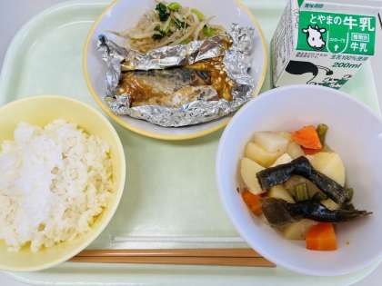 3月7日(火)の給食 公開日 2023/03/07 更新日 2023/03/07 給食室 本日の給食は、ごはん、さばの銀紙焼き、ごまびたし、関東炊き、牛乳 です。 銀紙焼きの甘みそ味でごはんが進みました。