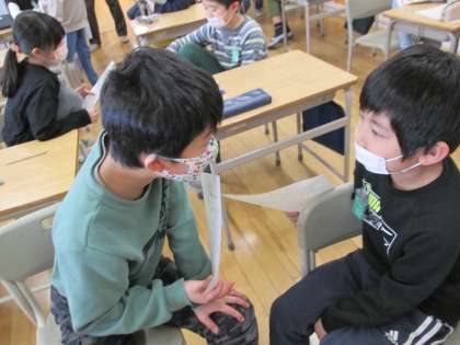 3月7日(火)、スクールカウンセラーの先生に、学級の仲を深めるグループエンカウンターの授業をしていただきました。活動を通して、できるだけ多くの友達と関わろうとする子供たちの姿が見られました。