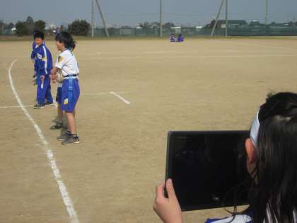 4年生タグラグビーの学習でリーグ戦を行っています。研究熱心な子供たちは、サインプレーを日に日に増やしていきます。中には、プロ選手が使う高度なサインプレーを試合の中で成功させるチームもあります。どの団も優勝に向けて気合い十分。クロムブックでの分析もばっちりです。
