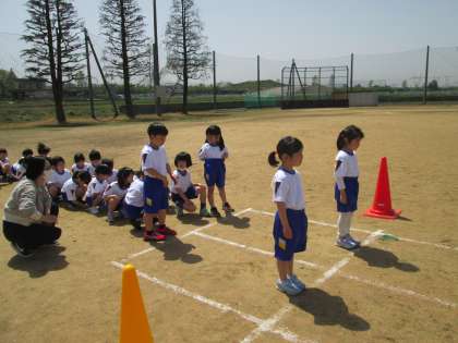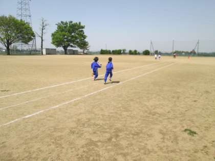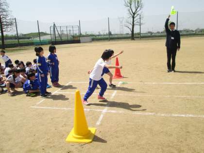 2時間目の学校紹介に引き続き、3時間目も1年生と2年生合同で50m走を行いました。2年生が走ってみせた後、1年生も走りました。みんなタイミングバッチリのスタートが切れました。
