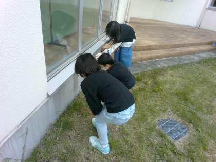 また、学級で育てているカナヘビのえさ取りに励む子供たちもいます。