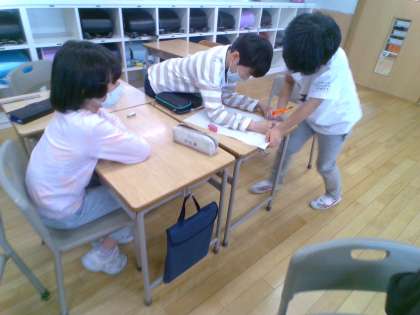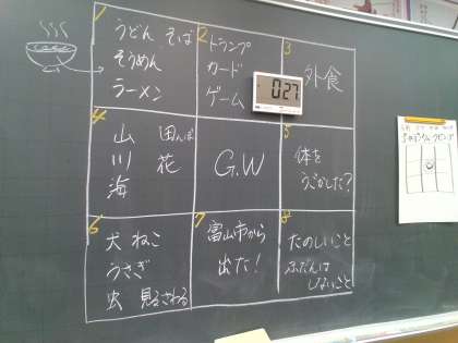 友達とゴールデンウィークの思い出を伝え合いました。思い出ビンゴが揃うように自分の経験を話す姿が見られました。