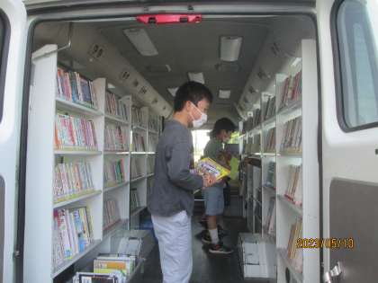 今年度初の自動車文庫がやってきました。普段は読めない本に喜ぶ姿や借りた冊数を友達と比べる姿が見られました。