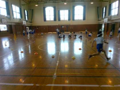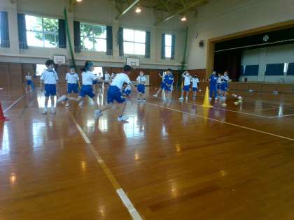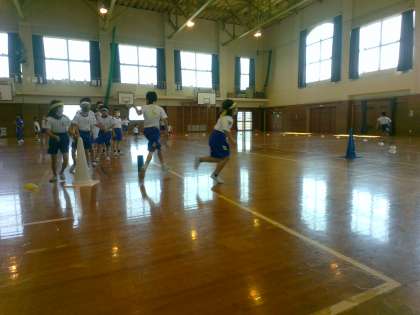 体育科では、パシュートリレーを行いました。バトンの受け渡しがスムーズにできるよう考えて活動する様子が見られました。