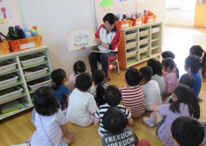 今日は、「カモシカとしょかん」を読んでいただきました。富山県の舟橋村で実際に起こった話が元になっているそうです。