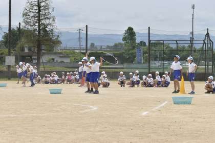 低学年は「ジャンボリー玉入れ」、中学年は「めくって、めぐって、150」、高学年は「輪・WA・和」を行いました。