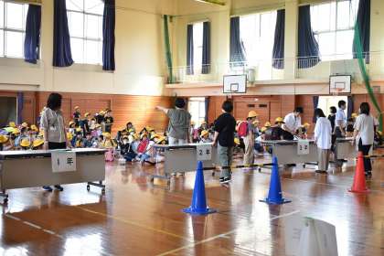 学習参観、学級懇談会の後には、引き渡し訓練を行いました。