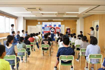 消防署員の方のお話を聞き、B・F・Cの誓いをしました。