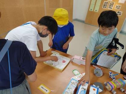 午後からは、エコタウンにてリサイクルによって作られた商品やおもちゃを見たり触ったりしました。また、バスに乗って企業の工場に入り、普段は見られないところまで見学しました。