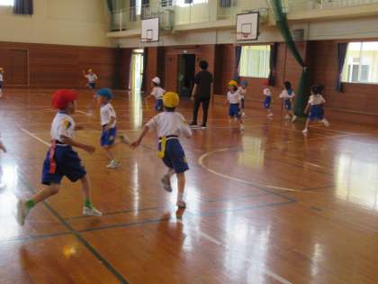 6月29日(木)、今日の体育科の学習は「しっぽとりおにごっこ」をしました。1回目の後、おにの時と逃げる時のコツをみんなで考えました。2回目は、友達が話していたコツを真似してやってみたり、新たな作戦を試したりして楽しみました。