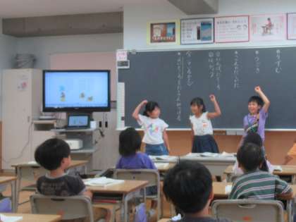 7月18日(火)、国語科の時間に「おむすびころりん」の音読発表会をしました。