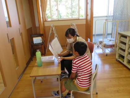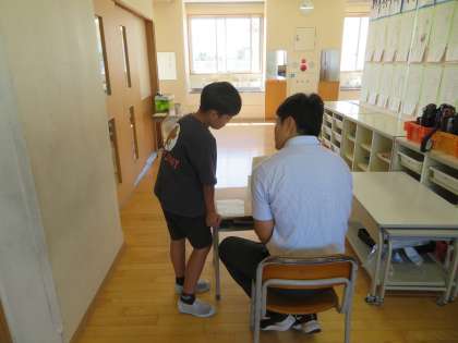 終業式後、各教室で1学期のあゆみを担任から渡しました。