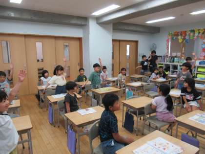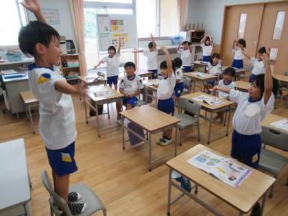 音楽科の学習では、1学期に習ったリズムの復習をしています。今日は「3時のおやつ」というゲームをしました。思い切りリズムにのって楽しんでいました。