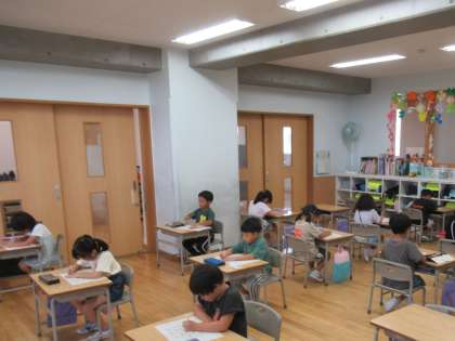 9月6日(水)、1学期の復習チャレンジテストを行いました。今日は、ひらがなのチャレンジテストでした。1学期に学習したことをよく思い出しながら、とめ、はね、はらいに気を付けて丁寧に取り組んでいました。
