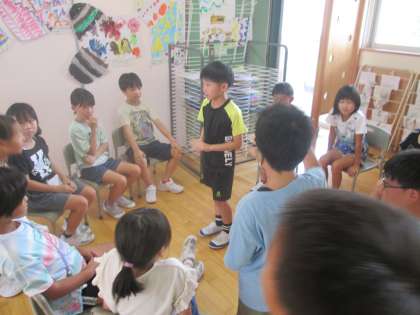 最近、猛暑や雨のために校内で遊ぶことが多く、みどりのタイム(業間)やいちょうタイム(昼休み)に、子供たちが声をかけ合って、みんなで楽しく遊んでいます。