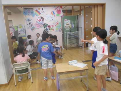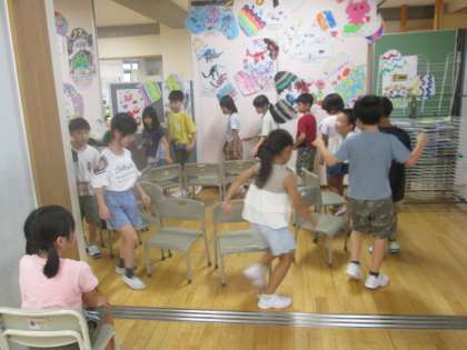 始めは「大根抜き」。次の日は「花いちもんめ」。そして、「だるまさんころんだ」「フルーツバスケット」「いす取りゲーム」と、日によって遊びが違います。