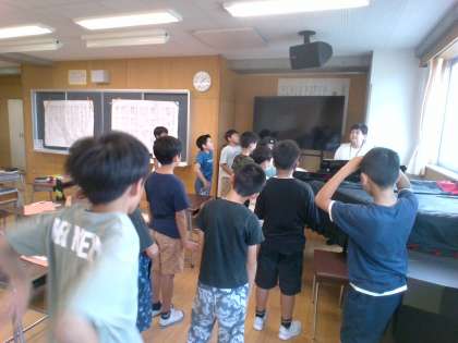 音楽科の時間に、校長先生に合唱を聞いていただきました。そして、一緒に練習もしていただきました。帰りの時間には、中央階段で合唱しました。
