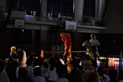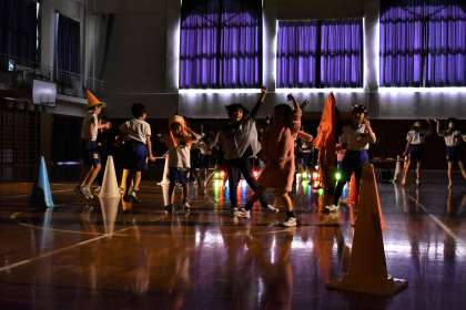 サツマイモ掘りと入れ替えで、体育館ではハロウィン・パーティーを行いました。