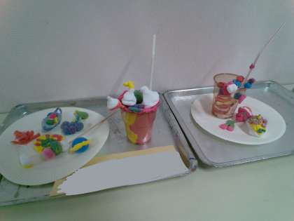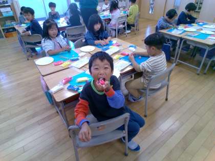 友達の作品を見て「美味しそう!」「その色、どうやって作ったの?」などと関わり合いながら楽しむことができました。