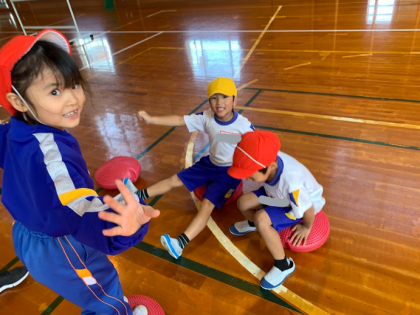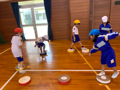 10月25日(水)、体育では「バランスあそび」をしました。友達と一緒に活動したり、道具を組み合わせてみたりして、様々な楽しみ方をしている子供たちでした。