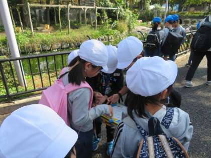 動物ビンゴに書いてある動物をなかなか見つけることができず、苦戦している場面も見られましたが、班の仲間と協力しながら無事、芝生広場に到着しました。