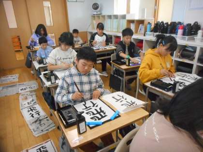 5年生は書写の学習で「飛行」を書きました。 文字の大きさに気を付けながら、書き上げました。