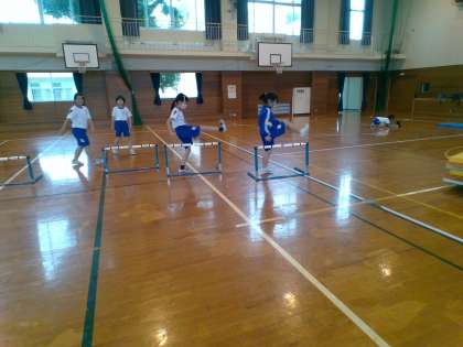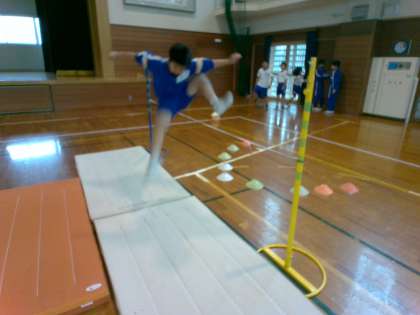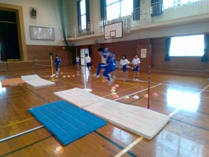 体育科「アツアツ!ハイジャンプ」では、子供たちは4つのゾーンから自分の力に合った活動場所を選んでいます。自分の限界に挑戦する様子やその結果に熱狂する姿が見られました。