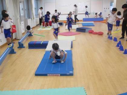 自分で遊ぶ場を選んだり、遊び場を工夫したりしながら、体育館全体を楽しい「おおたファミリーパーク」にすることができました。準備物がすごく多かったのですが、子供たちは協力して素早く出来るようになり、成長を感じます。