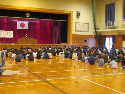 学校に元気な太田っ子の声が戻ってきました。第三学期のスタートです。朝から立山連峰もきれいに見え、子供たちを見守っているかのようでした。